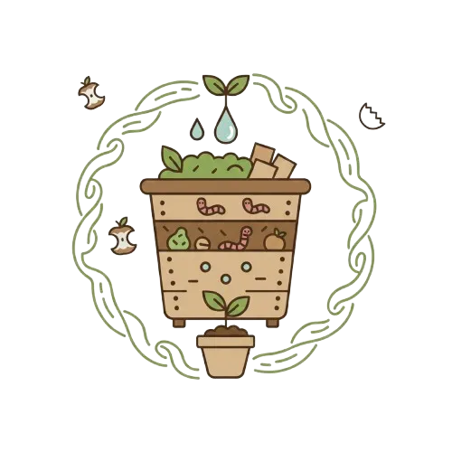 Användning av maskar för att bryta ner organiskt material. Denna metod producerar högkvalitativ kompost och flytande gödselmedel. Kräver regelbunden vård men är mycket effektiv.